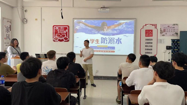 随后,两位院领导来到102教室与21机械班全体同学一起参加了以《大学生防溺水》安全教育为主题班会,辅导员徐雪云通过安全教育课件,引导同学们辨别溺水情况,掌握溺水自救及施救方法。会后,程院长结合学习内容,对同学们提出争做“强意识懂知识践孝顺”优秀青年的殷切期盼。
