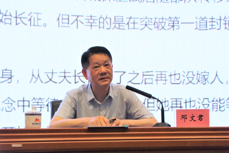 “从井冈山到瑞金,从于都到万里长征,一个个感人至深的故事,每次讲来、每次听来,都觉得是一次灵魂的洗礼、心灵的升华。”日前,学校举行“同上一堂党史课”,校党委副书记邓文君为百余名党员干部作宣讲。