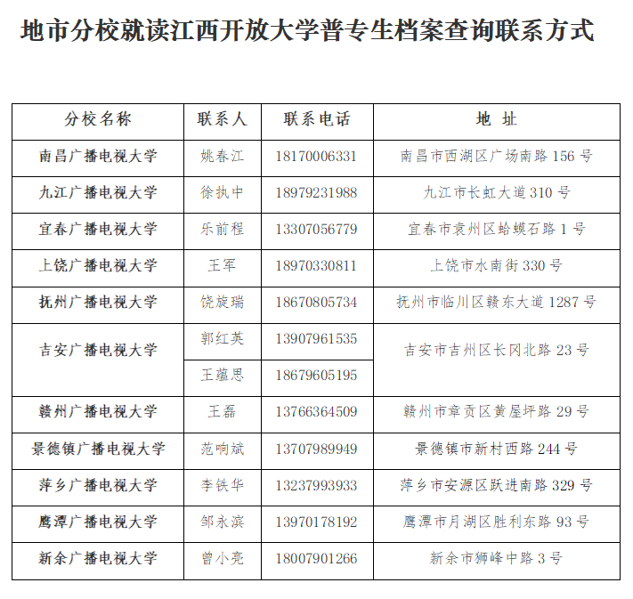 地市分校就读学生请前往原就读学校查询档案,具体联系方式及地址如下: