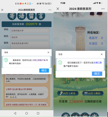 党员同志们通过便捷、文明、绿色的“云祭扫”,网上浏览英烈事迹、观看视频展播、敬献花篮、发表追思寄语等方式,深切表达对英烈的崇高敬意与追思之情。