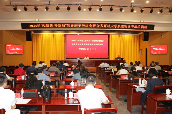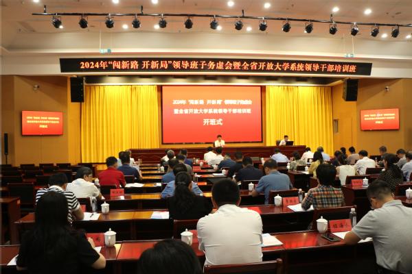 8月24日,2024年“闯新路 开新局”领导班子务虚会暨全省开放大学系统领导干部培训班在江西靖安开班。yl23455永利官网全体校领导出席,各设区市开放大学、产业与乡村振兴学院负责人以及学校各部门、单位主要负责人等50余人参加。