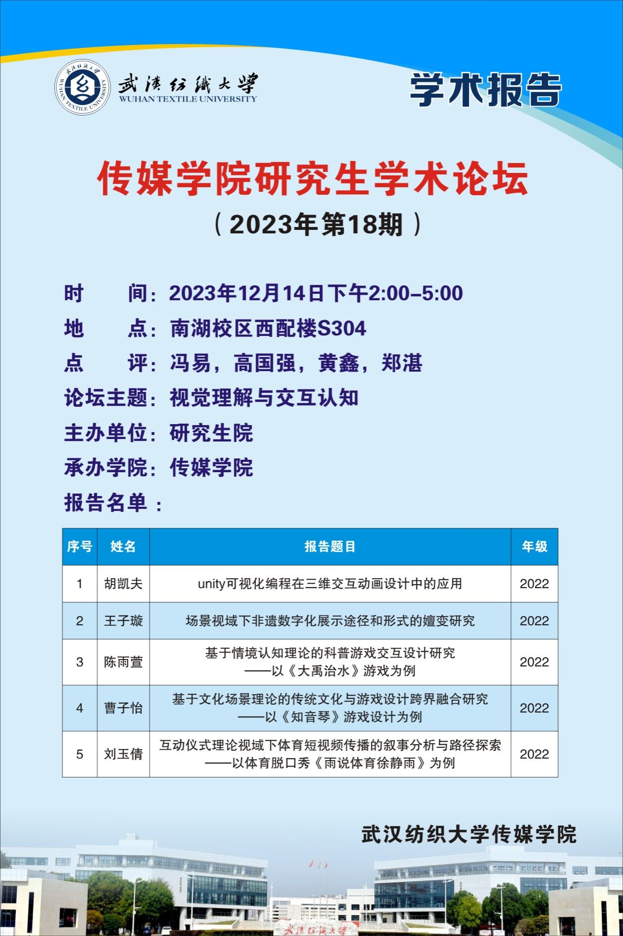 学术预告:第481期研究生学术论坛暨传媒学院2023年第18期研究生学术论坛