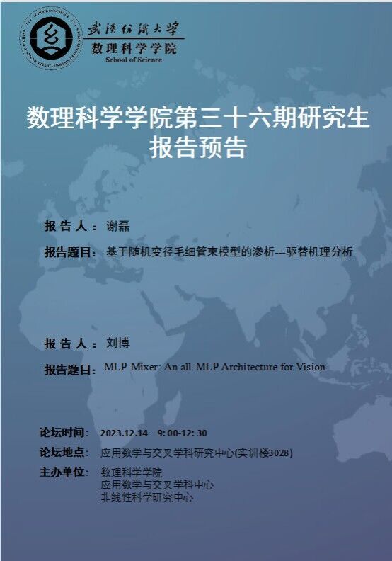 学术预告:第483期研究生学术论坛暨数理科学学院2023年第36期研究生学术论坛