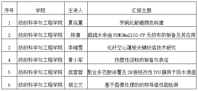 第93期研究生学术论坛:纺织新材料及绿色加工