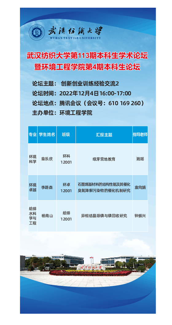 BB贝博的官方网站第113期本科生学术论坛暨环境工程学院第4期本科生论坛