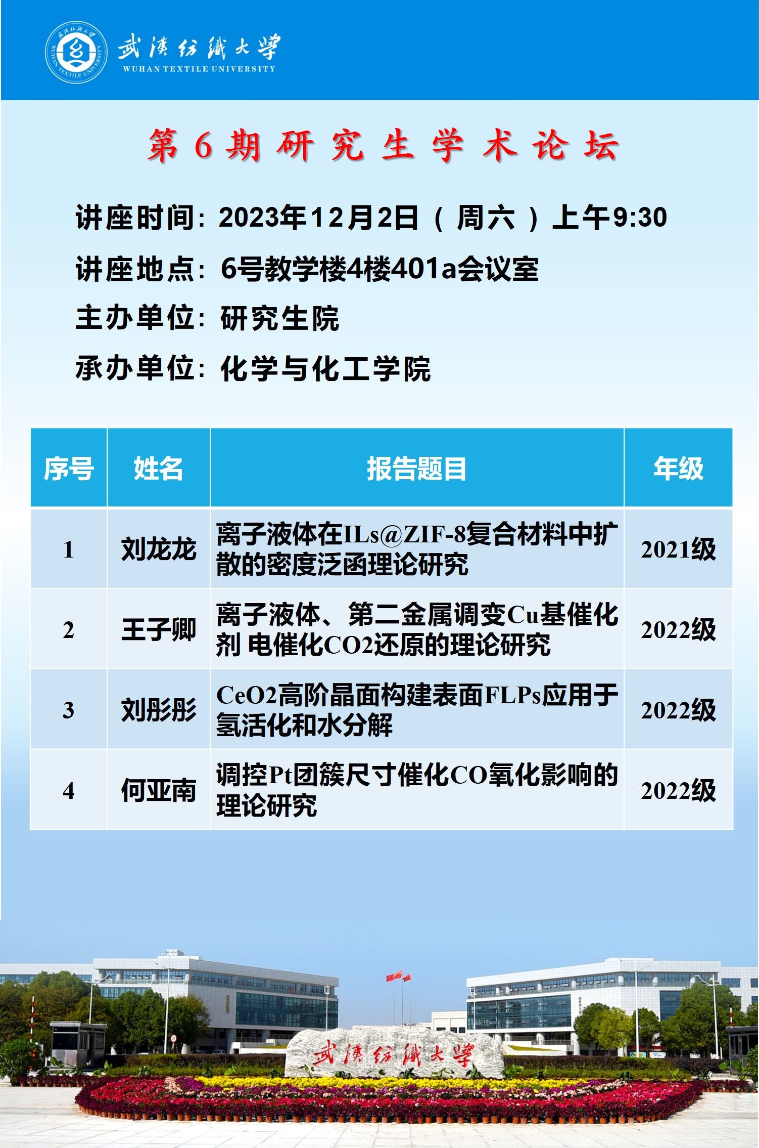 学术预告:第451期研究生学术论坛暨化学与化工学院2023年第5期研究生学术论坛