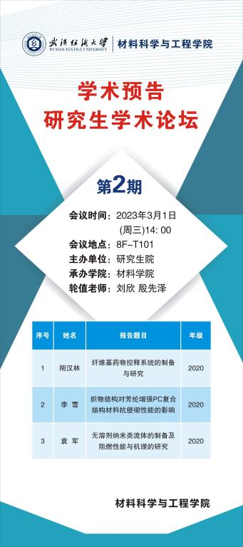 学术预告:第208期研究生学术论坛暨材料科学与工程学院2023年第2期研究生学术论坛