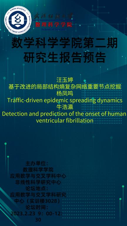 学术预告:第222期研究生学术论坛暨数理科学学院2023年第2期研究生学术论坛