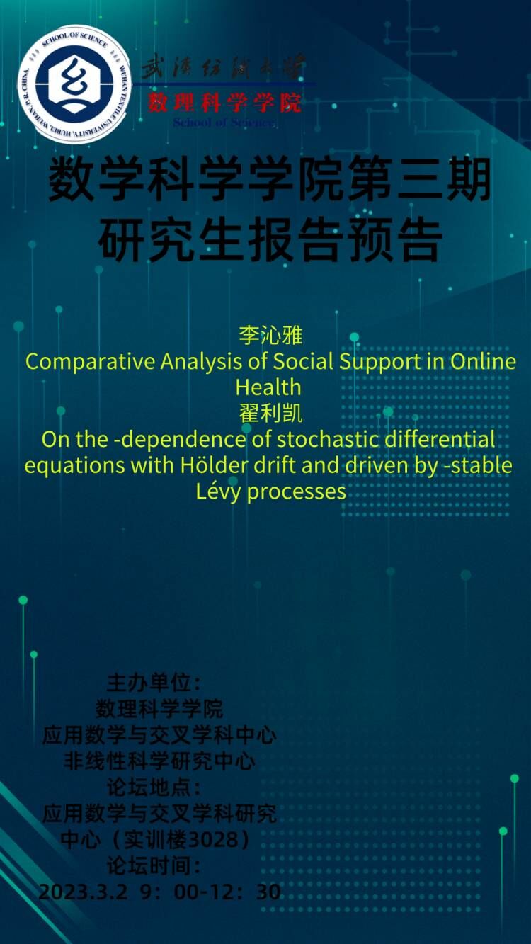学术预告:第223期研究生学术论坛暨数理科学学院2023年第3期研究生学术论坛
