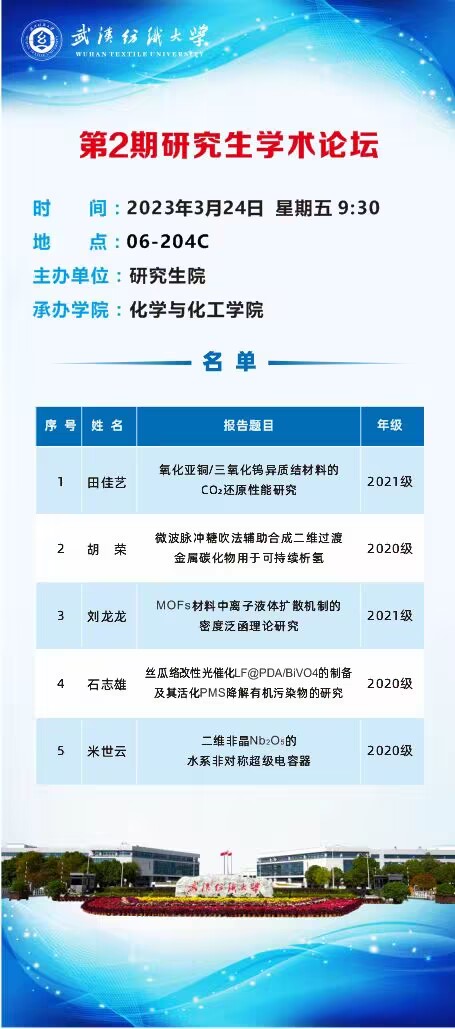 学术预告:第224期研究生学术论坛暨化学与化工学院2023年第2期研究生学术论坛