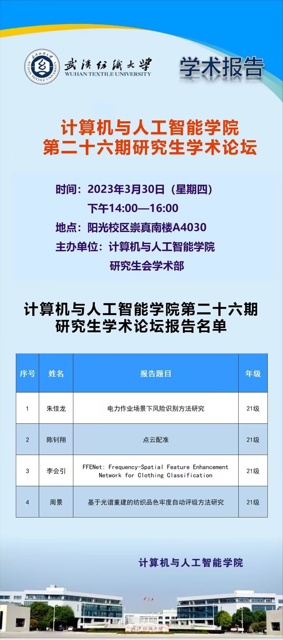 学术预告:第232期研究生学术论坛暨计算机与人工智能学院2023年第3期研究生学术论坛