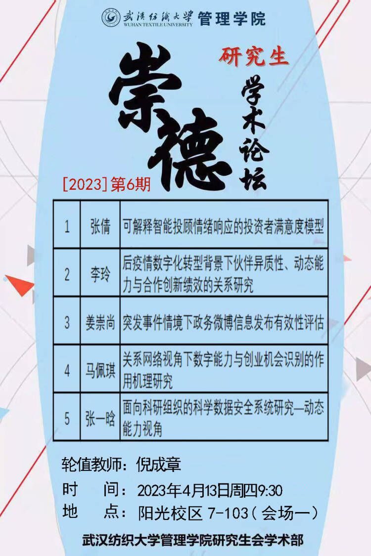 学术预告:第248期研究生学术论坛暨管理学院2023年第6期研究生学术论坛