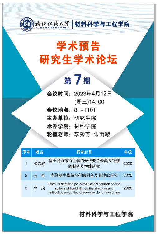 学术预告:第250期研究生学术论坛暨材料科学与工程学院2023年第7期研究生论坛