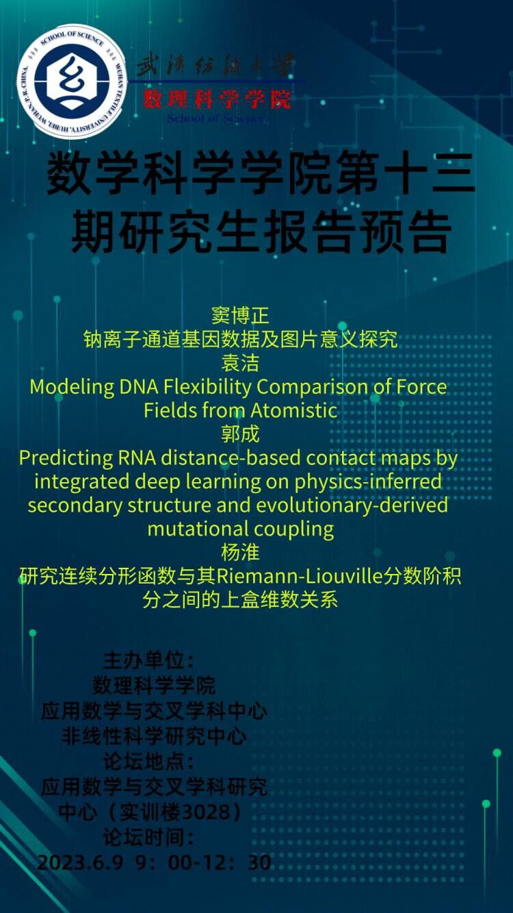 学术预告:第313期研究生学术论坛暨数理科学学院2023年第13期研究生学术论坛