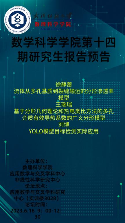 学术预告:第317期研究生学术论坛暨数理科学学院2023年第14期研究生学术论坛