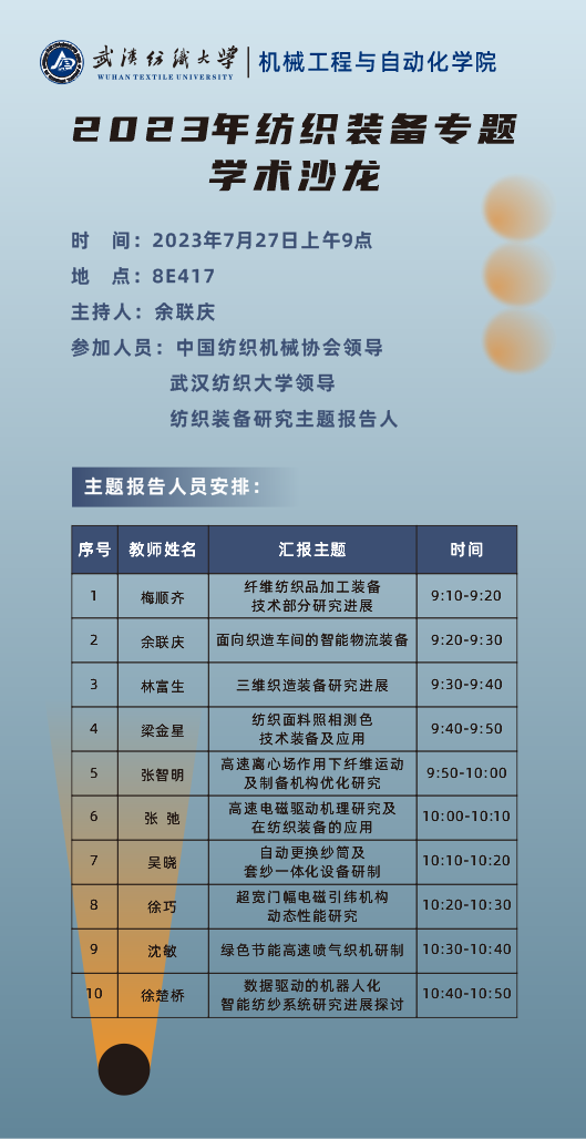 学术预告:2023年纺织装备专题学术沙龙暨第432期阳光论坛