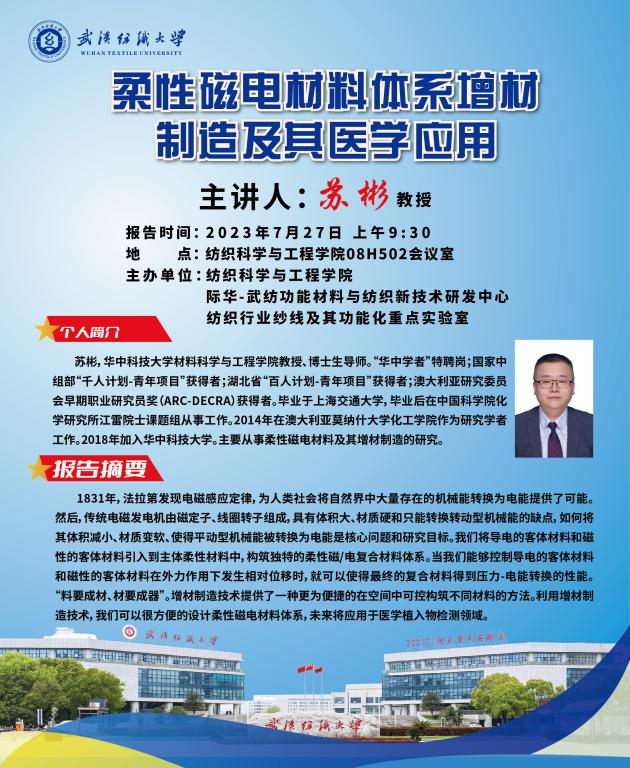 学术预告:第433期阳光论坛柔性磁电材料体系增材制造及其医学应用