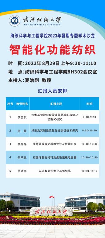 学术预告:纺织科学与工程学院举办第439期阳光论坛暨2023年暑期智能化功能纺织专题学术沙龙