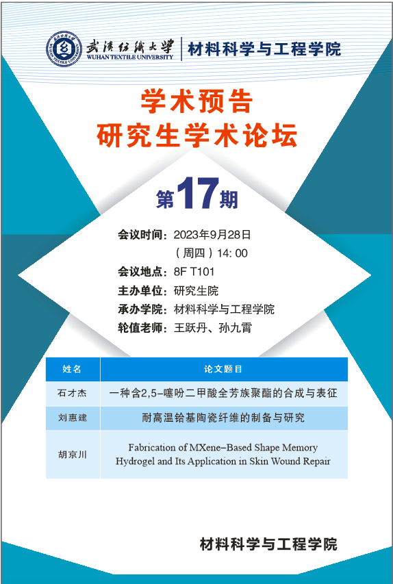 学术预告:第337期研究生学术论坛暨材料科学与工程学院2023年第17期研究生学术论坛