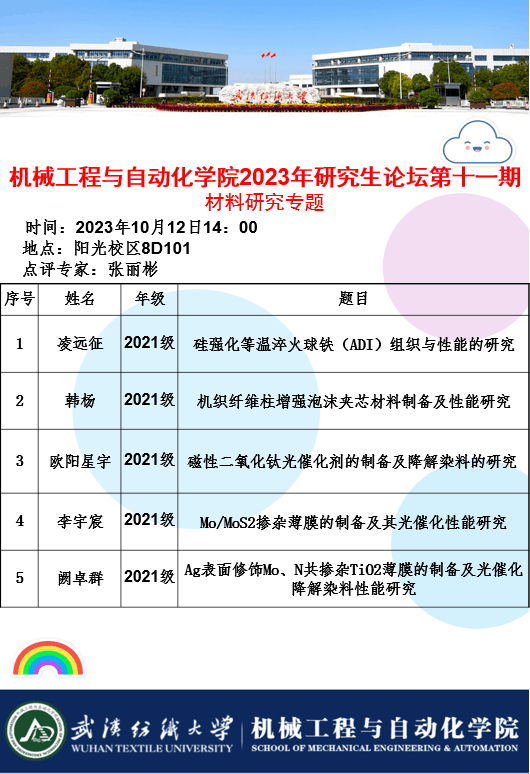 学术预告:第346期研究生学术论坛暨机械工程与自动化学院2023年第11期研究生学术论坛