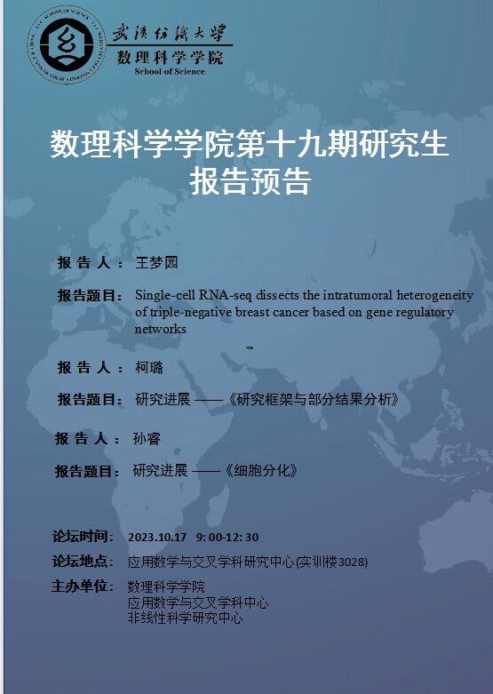 学术预告:第367期研究生学术论坛暨数理科学学院2023年第19期研究生学术论坛
