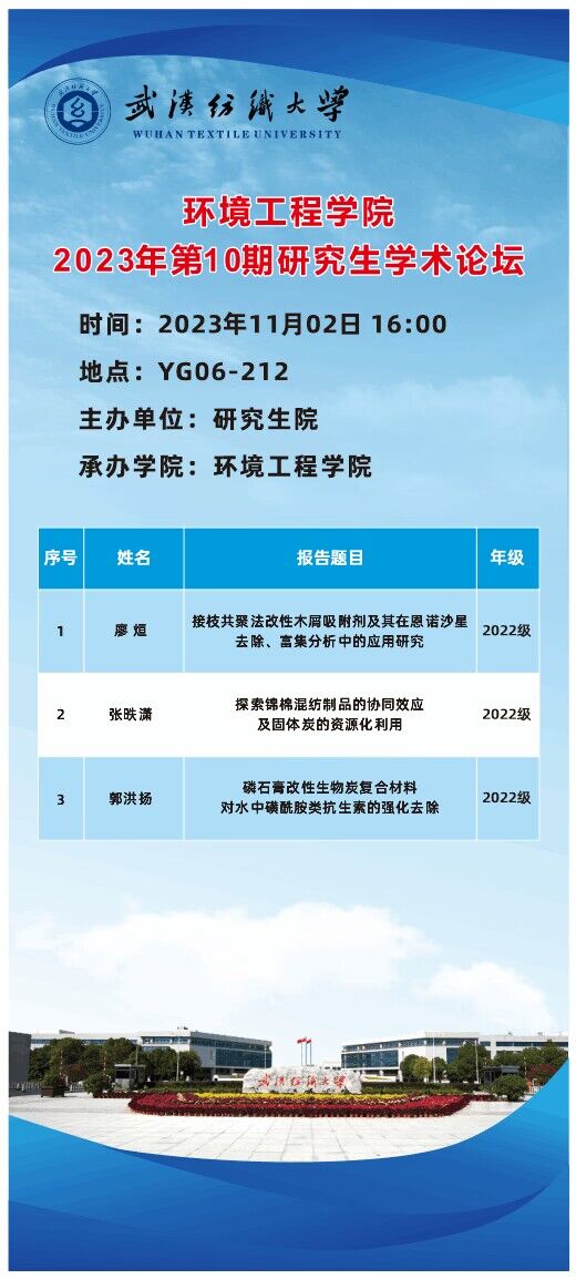 学术预告:第387期研究生学术论坛暨环境工程学院2023年第10期研究生学术论坛