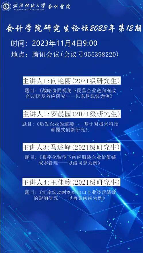 学术预告:第396期研究生学术论坛暨会计学院2023年第12期研究生学术论坛