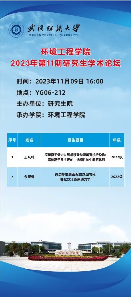 学术预告:第398期研究生学术论坛暨环境工程学院2023年第11期研究生学术论坛
