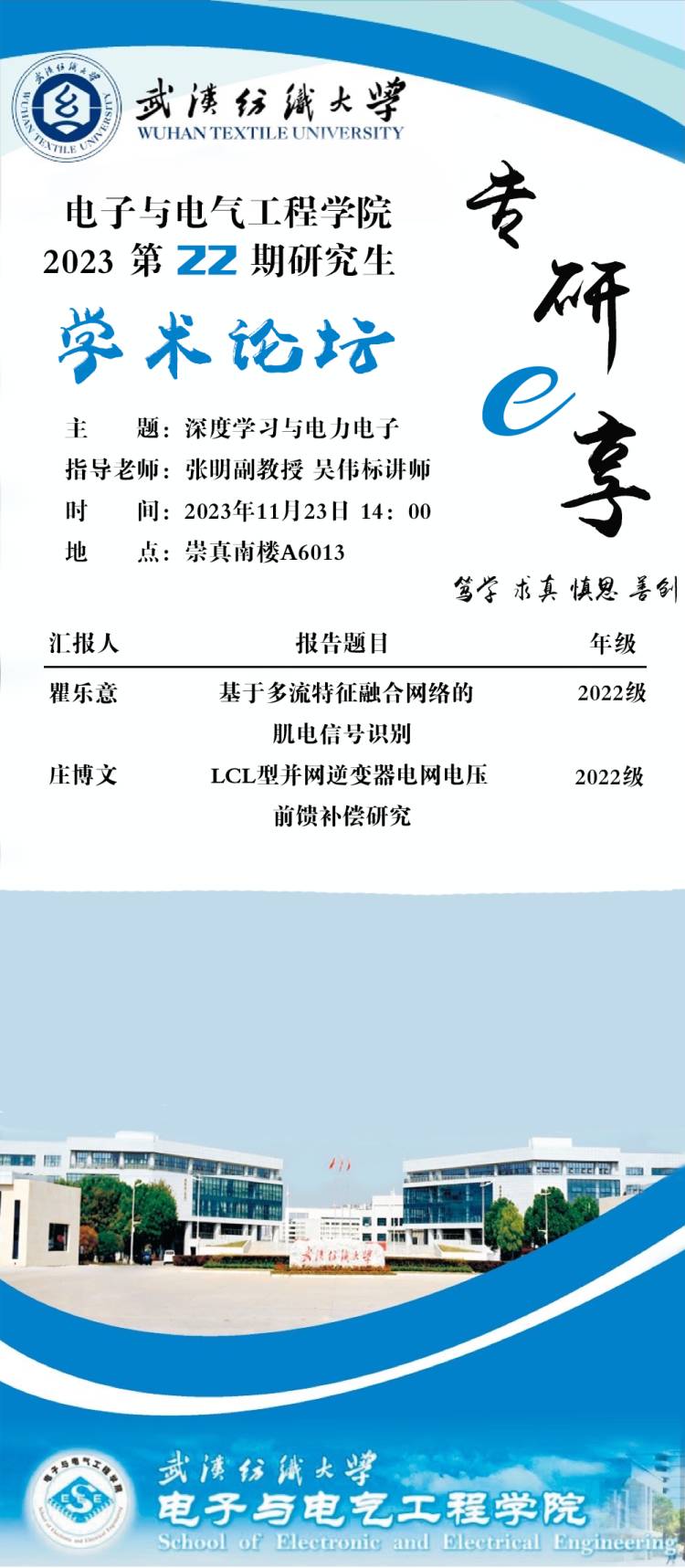 学术预告:第426期研究生学术论坛暨电子与电气工程学院2023年第22期研究生学术论坛