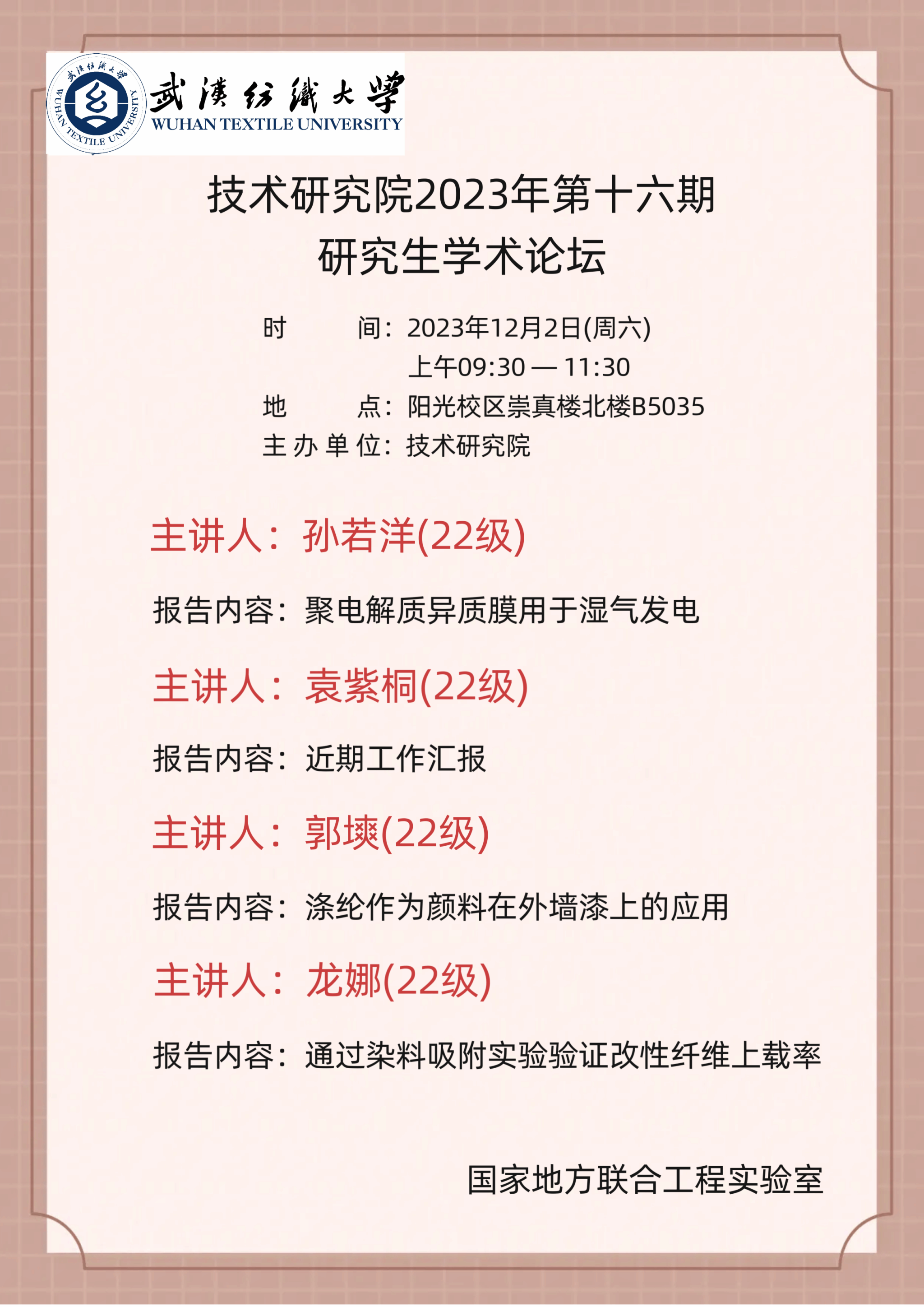 学术预告:第441期研究生学术论坛暨技术研究院2023年第16期研究生学术论坛