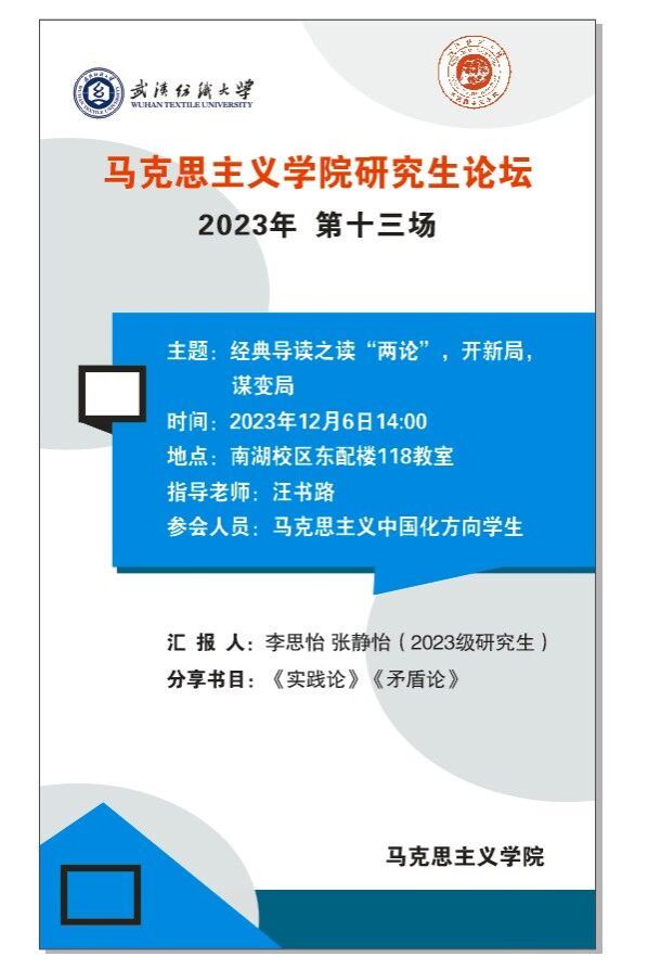 学术预告:第448期研究生学术论坛暨马克思主义学院2023年第13期研究生学术论坛