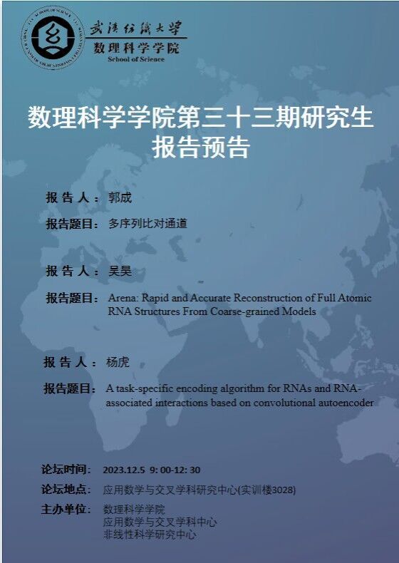 学术预告:第460期研究生学术论坛暨数理科学学院2023年第33期研究生学术论坛