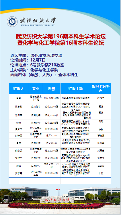 第196期本科生学术论坛暨化工学院第16期本科生论坛
