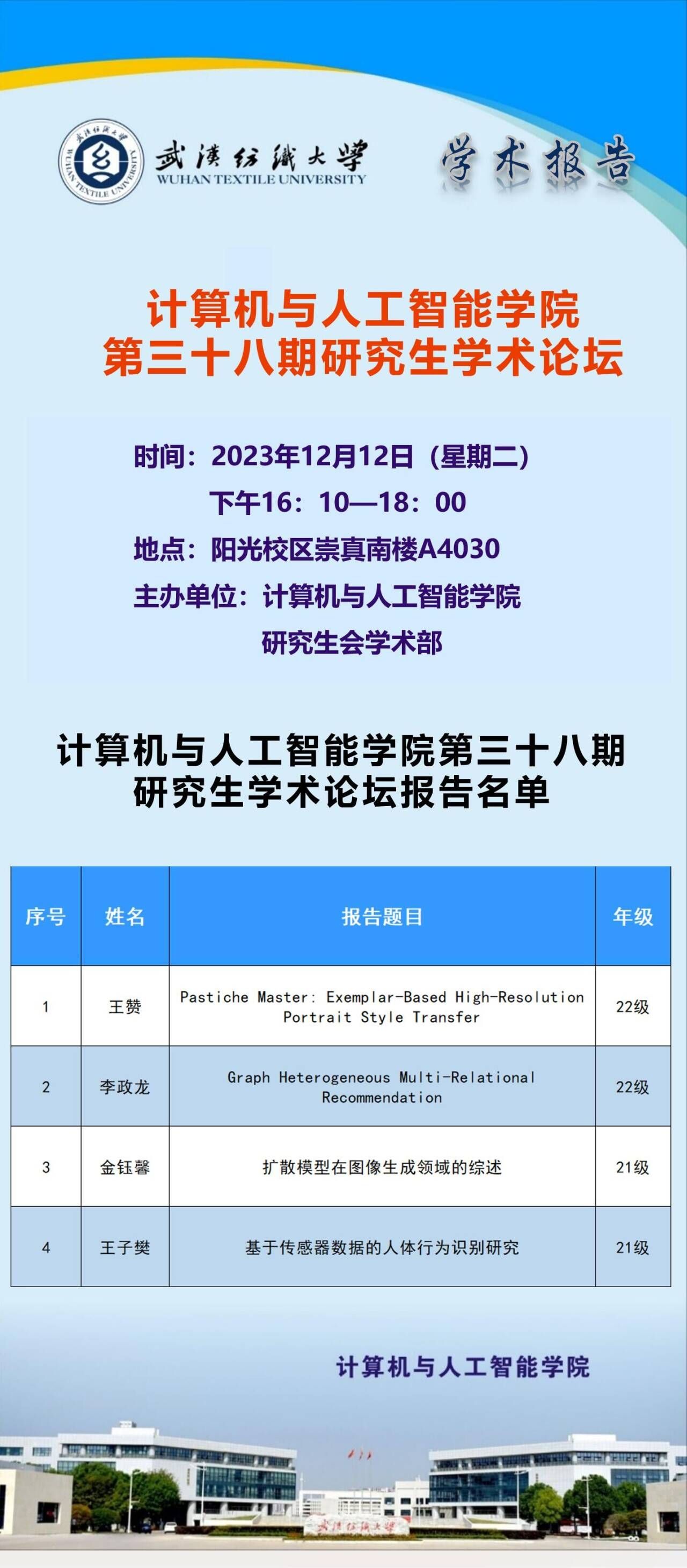 学术预告:第467期研究生学术论坛暨计算机与人工智能学院2023年第14期研究生学术论坛