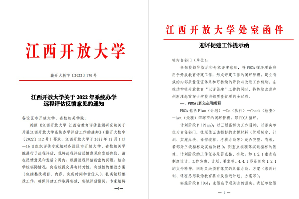学校将PDCA循环理论应用于开放教育评建工作始终,建立Plan(计划)-Do(执行)-Check(检查)-Act(处理)四环节的闭环管理。责任部门发布了迎评促建工作提示函,要求建立有效的内部质量保证体系和可持续的评价与改进工作机制,利用大循环嵌小循环,在评建过程中实现办学质量的螺旋式提升。在推动学校开放教育“以评促建”工作的同时,将持续改进和创新理念贯穿于学校内部质量管理的全过程,进而推动学校高质量发展。