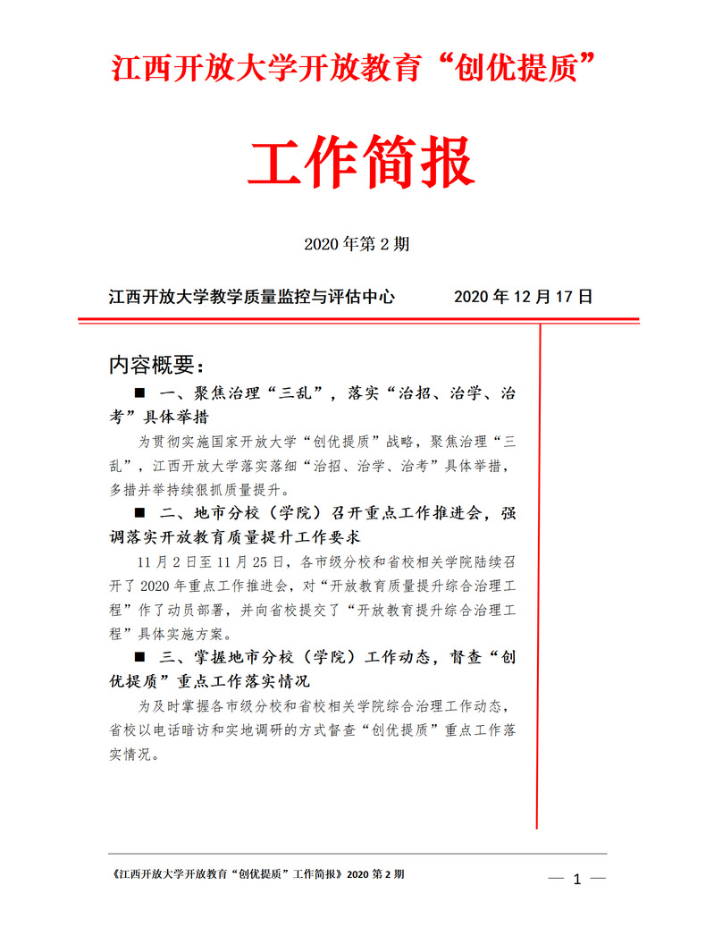 yl23455永利官网开放教育“创优提质”工作简报 2021年第2期(总第2期)