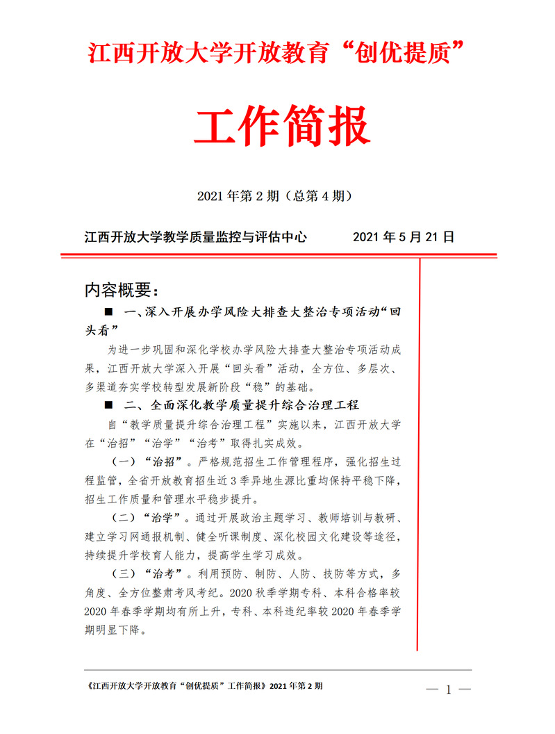 yl23455永利官网开放教育“创优提质”工作简报 2021年第2期(总第4期)