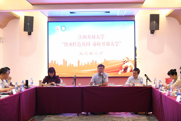 萍乡开放大学副校长左仁祥、吉安开放大学校长贺晓斌、赣州开放大学副校长钟贤才分别就如何传承安源夜校”“井冈山龙江书院”“苏区夜校红色资源,办好开放大学作主题发言。
