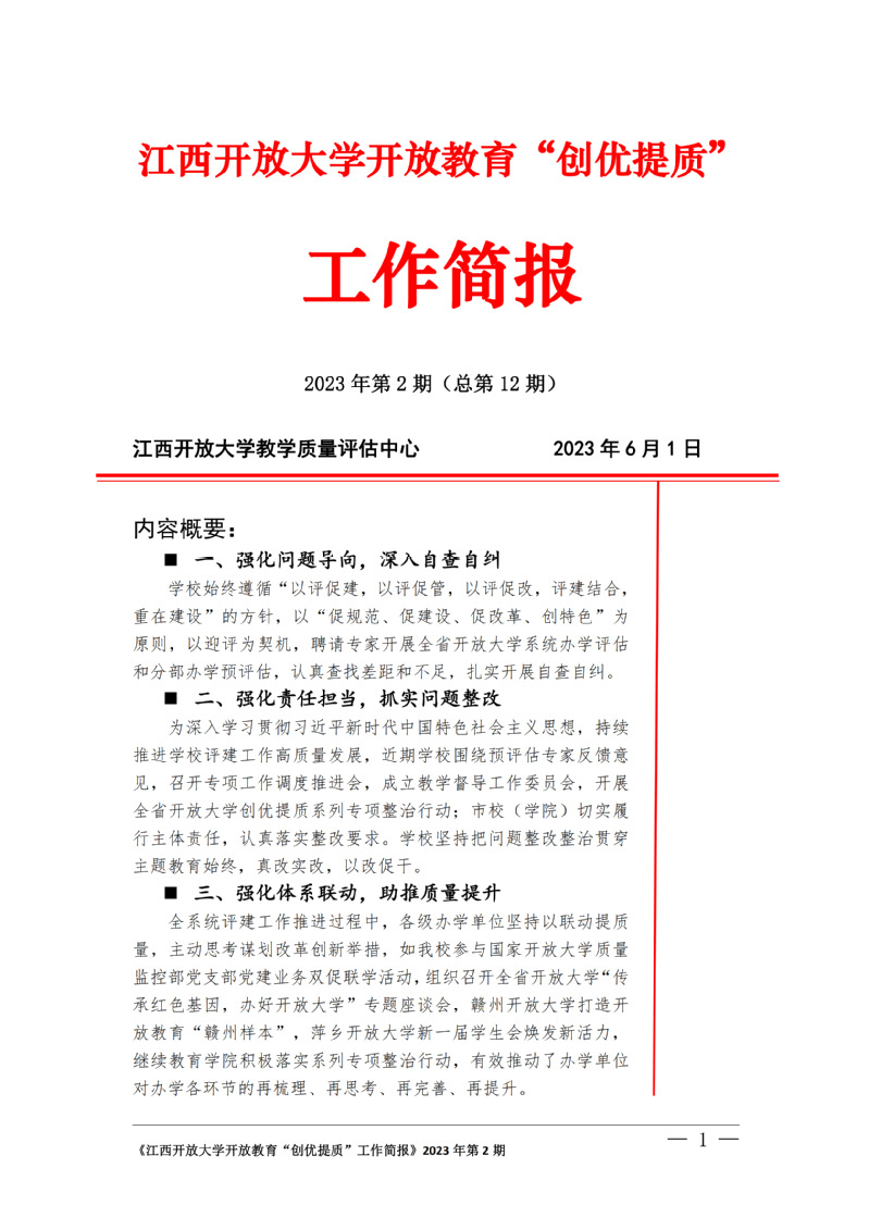yl23455永利官网开放教育“创优提质”工作简报2023年第2期(总第12期)