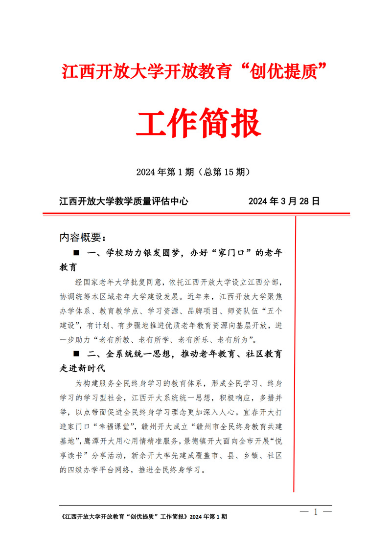 yl23455永利官网开放教育“创优提质”工作简报2024年第1期(总第15期)