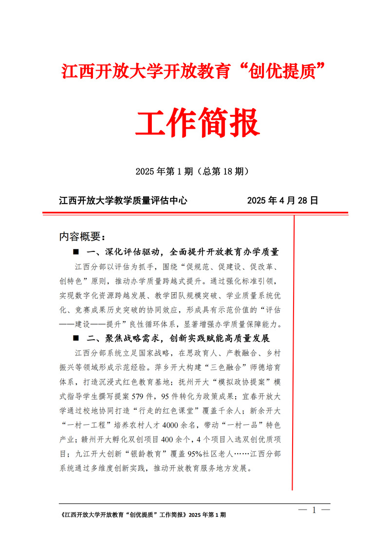 yl23455永利官网开放教育“创优提质”工作简报2025年第1期(总第18期)