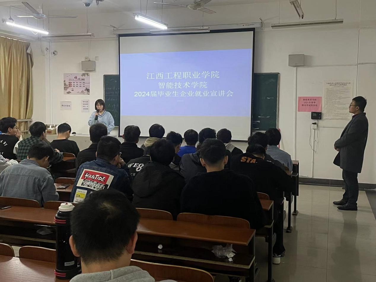 为扎实推进“稳就业”“保就业”决策部署和我院2024届毕业生就业工作,进一步加强校企合作,为我院学生提供丰富的就业信息和就业渠道,学院于11月27日下午、11月29日下午分别组织开展两场聘宣讲会,特邀苏州汇川技术有限公司、宁波环球广电科技有限公司、上汽大通汽车有限公司等企业来校招聘,参加招聘宣讲的学生共计200余人。