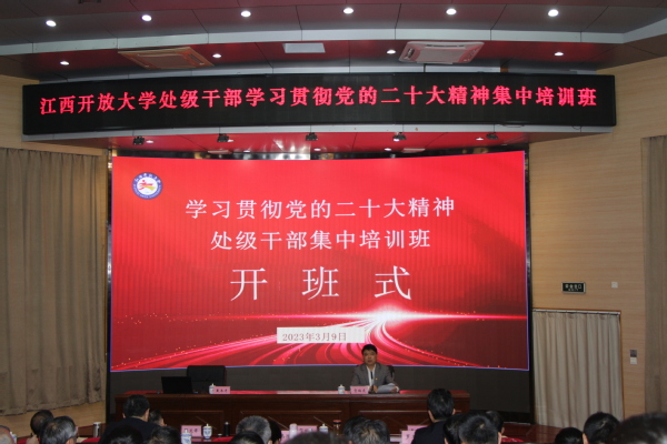 3月9日上午,yl23455永利官网处级干部学习贯彻党的二十大精神集中培训班正式开班。校党委书记贺瑞虎主持并作开班动员讲话。在家校领导出席、全体处级干部参加。全省各设区市开放大学领导干部以线上方式参会。