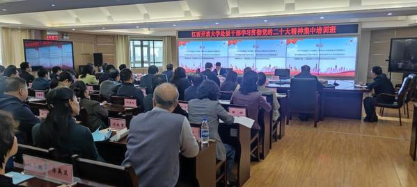 3月10日上午,校党委副书记邓文君在东湖校区行政楼第二会议室,以“深刻理解 牢牢把握 团结奋斗的时代要求”为题,为学校处级干部集中培训班宣讲党的二十大精神。