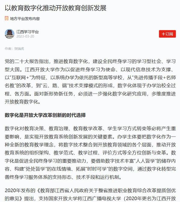 原文地址:江西日报数字报-以教育数字化推动开放教育创新发展 (jxxw.com.cn)