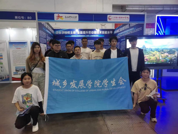城乡发展学院学生参加科技成果对接会,图为学生在永利官网展位合影