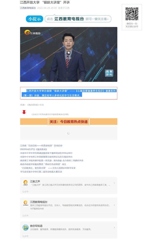 yl23455永利官网举办首期“银龄大讲堂”——《心脑血管健康养生知识》健康系列(第一期)讲座,满足老年人多样化的学习生活需求。原文地址:https://mp.weixin.qq.com/s?__biz=MzA4NjQyNTEzNw==&mid=2649769305&idx=4&sn=a8dde86613fa3d5aaa4ff81566f45c74&chksm=87cc0e07b0bb871188a8c83eb823f3ec604445c89f2ff5b7bc46f7218fb3156525d79bac6815&mpshare=1&scene=23&srcid=0428bai24h7NuBax4PTp29g5&sharer_sharetime=1682736665895&sharer_shareid=c7a073bbadff0c22802ae7b43c175d7d#rd (责任编辑:罗楚颖)