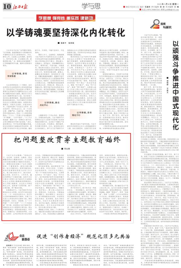 邓文君在《江西日报》发表文章《把问题整改贯穿主题教育始终》 “学习强国”转载