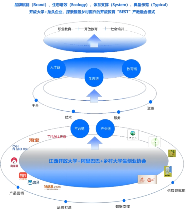2023年,yl23455永利官网按照国家开放大学有关“一村一名大学生”助力乡村振兴人才培养要求,在yl23455永利官网和N个乡村大学生创新创业协会的基础上,引入龙头企业阿里巴巴对模式进行优化升级,深入推进开放教育产教融合和校企合作。未来,双方还将持续开展技术培训与服务合作,赋能区域产业创新升级与人才技能提升,服务乡村振兴、“数商兴农”等重大战略实施。