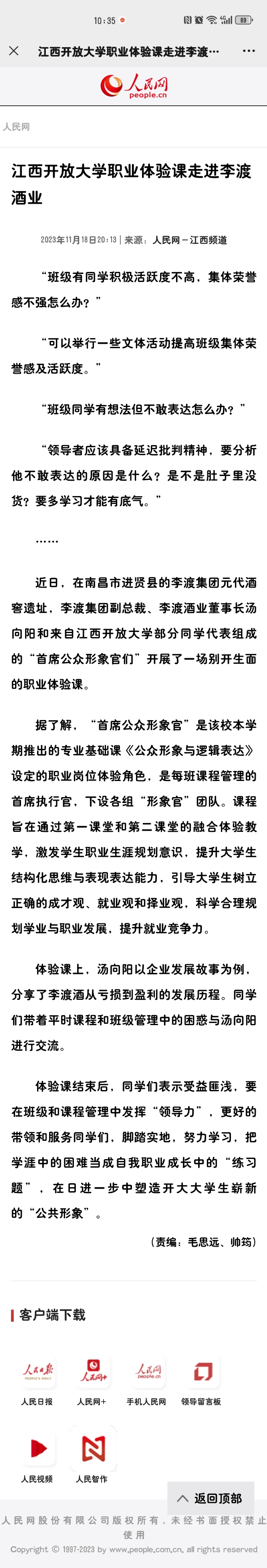 人民网:yl23455永利官网职业体验课走进李渡酒业